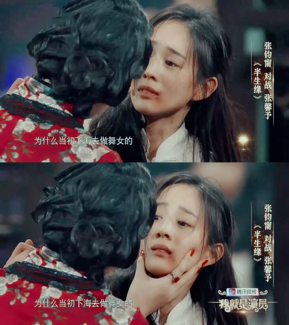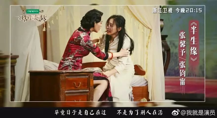 张钧甯和张馨予搭档,在《我就是演员》的舞台上,共同演绎了一段电视剧《半生缘》中的片段。姐姐为了家庭下海做了舞女,后来嫁给了祝鸿才,但是不能生育的她眼看就要失去这段婚姻,而这段婚姻是维持整个家的唯一稻草,于是,她就把妹妹骗来为祝鸿才生孩子......