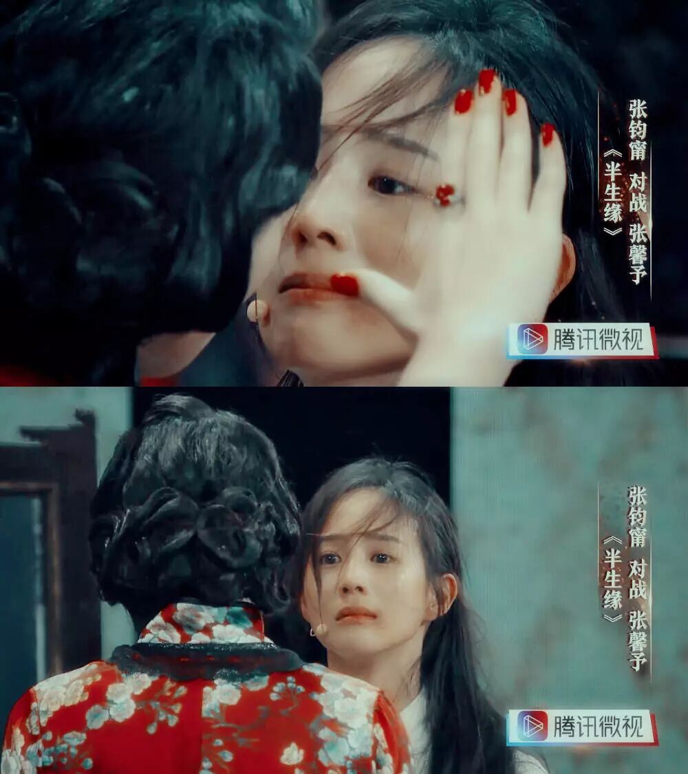 这是一段,妹妹顾曼桢刚刚遭受完祝鸿才的“迫害”,姐姐来安慰妹妹的戏。张钧甯饰演的妹妹,从一出场、第一个镜头就紧紧抓住了观众们的眼球。