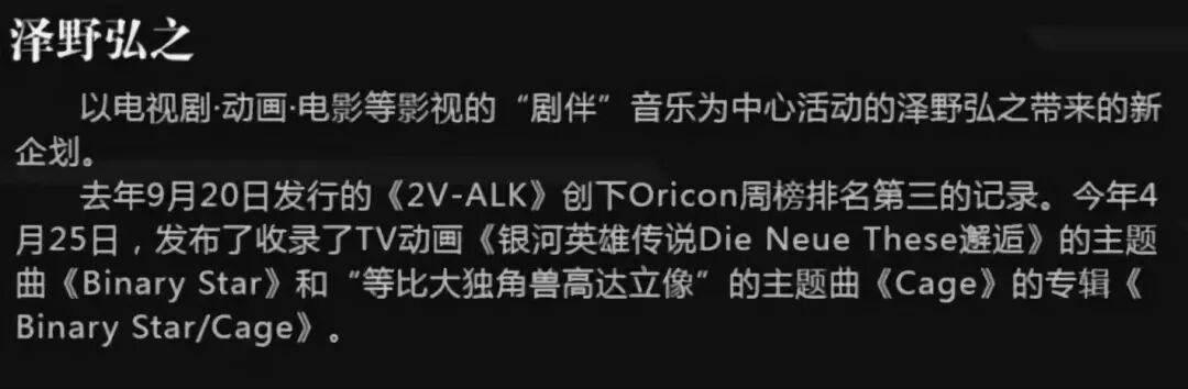 著名音乐人泽野弘之正式宣布于12月6日在上海东方艺术中心举行个人首次海外演出,届时将携四位VOCAL及乐队带来表演。