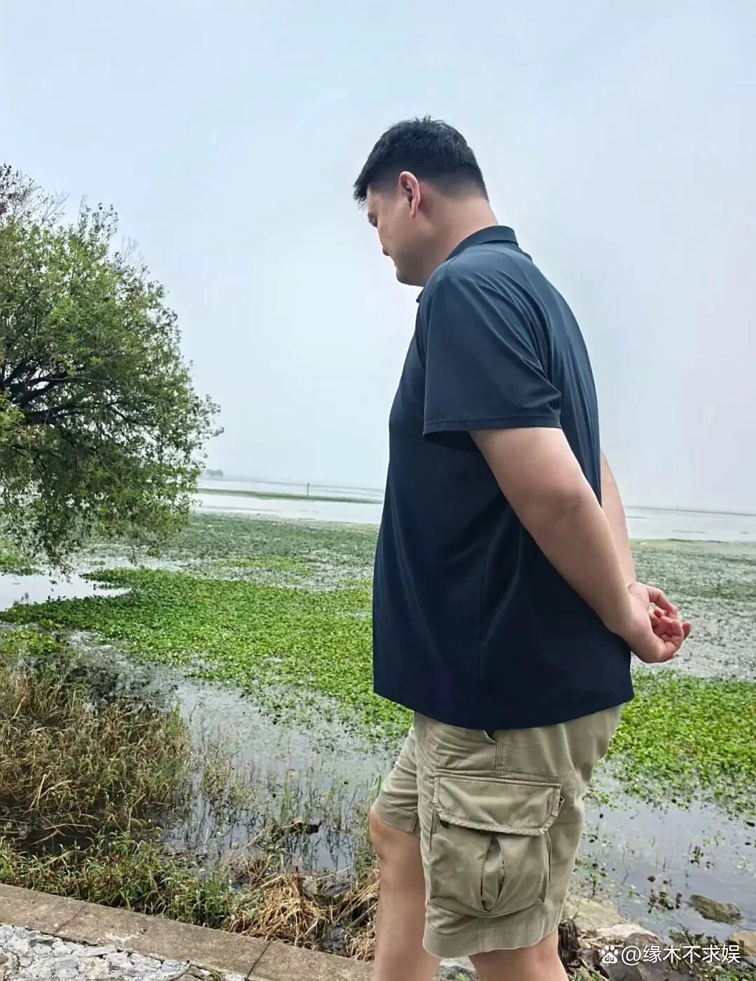 据悉,姚明一家先是去了苏州的太湖西山岛游玩。这天姚明穿着藏青色polo衫搭配卡其色短裤,他叉着腰笑得十分开心。在他身前的是穿着白衣蓝裤的叶莉。身高190cm的叶莉站在姚明身边,显得十分娇小,她同样笑得很开心,显得是聊到了什么开心的是事情。