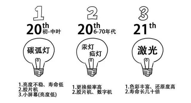 放映机的原理简单的说就是用一个光源,将影像投放在大屏幕上,而现在电影中的“看不清”主要是因为放映机的光源亮度不足所致,而目前市场上运用的氙灯光源的寿命一般只有三个月,且亮度衰减非常快。