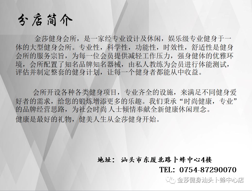 金莎还有时下流行的课程,爵士舞、肚皮舞、拉丁舞、形体舞、健身操等。明星教练带领,动作难度不大,零基础也hold得住,在轻松愉悦的氛围下轻松舞蹈就可以塑形美体。