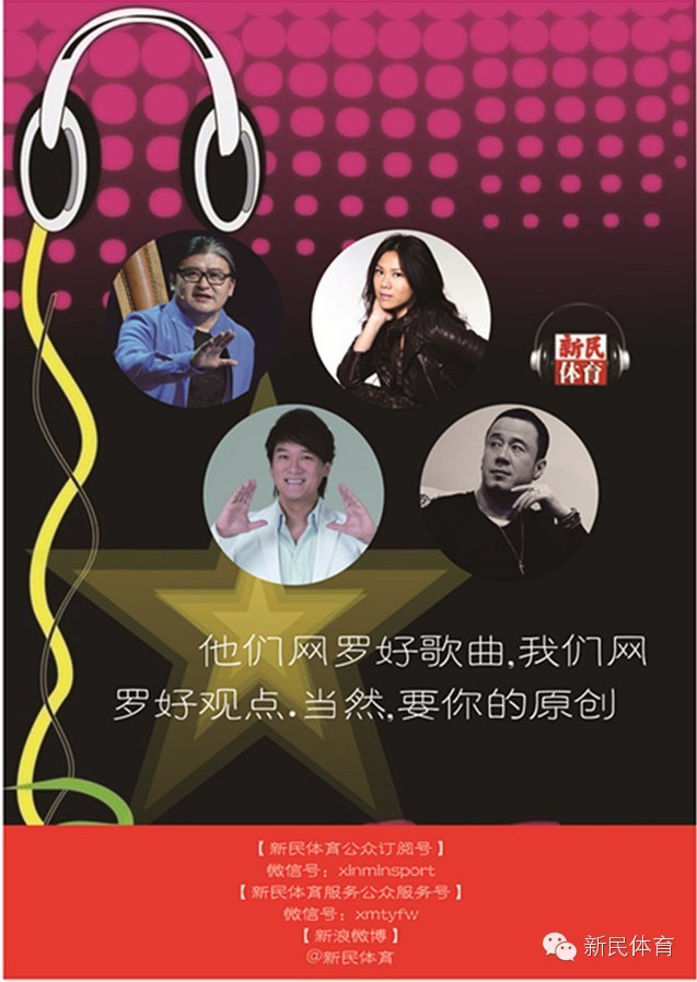请关注新民体育微信——他们网罗好歌曲,我们网罗好观点,当然,要你的原创。