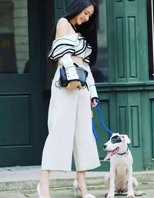 郭碧婷也是活生生的一“小腰精”,黑白拼接的荷叶边吊带上衣搭配白色九分阔腿裤,露出纤细蛮腰和香肩,这杀伤力也是没sei了,搭配白色细跟高跟鞋让造型更加有时尚感。