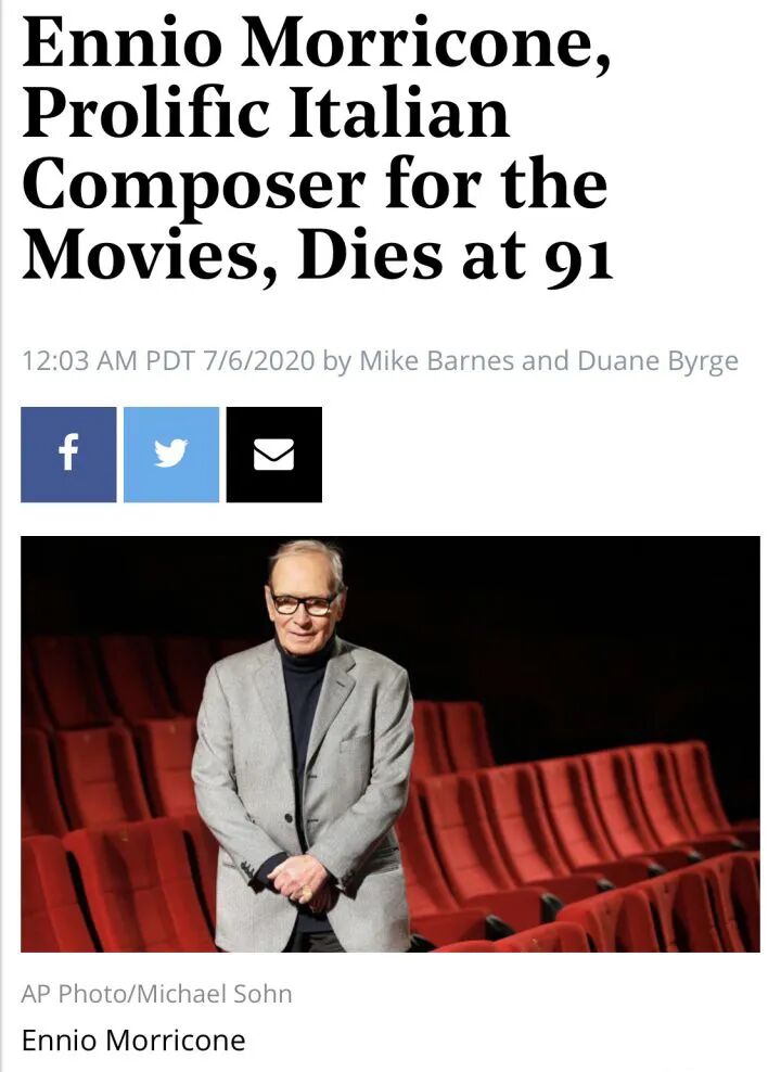 意大利配乐大师Ennio Morricone永远的离开了人世。
