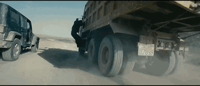 《西风烈》里有一场难度极高的动作戏:在并驰的两辆车之间,段奕宏需要从中间跳过去。