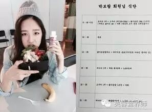 作为长期奋战在减肥一线的营养师,我当然最关心她的减肥食谱,废话不多说了,直接上干货,朴宝蓝的减肥食谱如下: