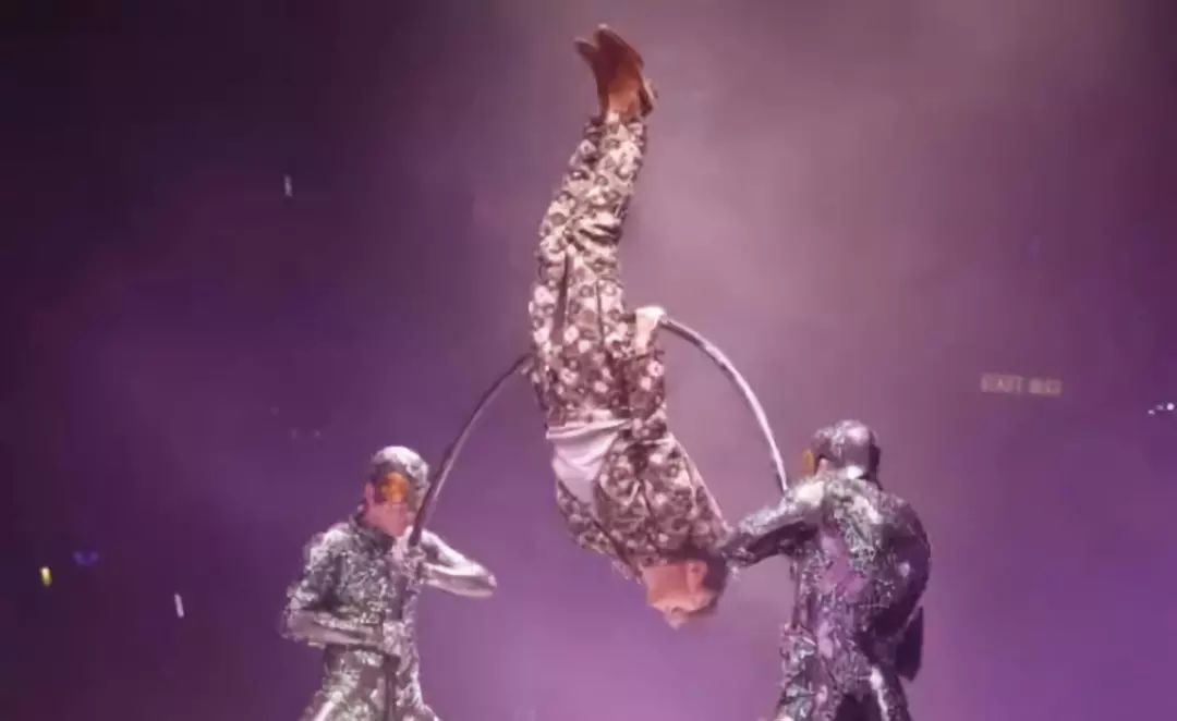 为了带给歌迷们惊喜,郑伊健还偶尔做了几个高难度动作。比如以呼啦圈为单杠,做引体向上,甚至在毫无安全措施的前提下,直接倒挂金钩。台下歌迷心情复杂,既有欢呼声,又有提醒他小心的担忧声。蒙嘉慧和公公婆婆在座位上则尽情享受,他们定然看过郑伊健的彩排,所以对他极为放心。