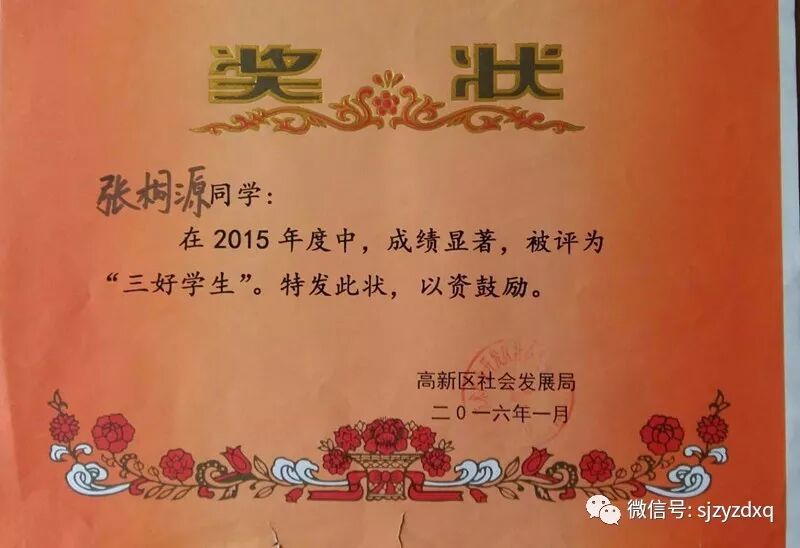功夫不负有心人,张桐源同学曾多次荣获武术比赛荣誉证书,并曾获区级“三好学生”称号。入学军训时表现突出,多次被评为“训练标兵”。