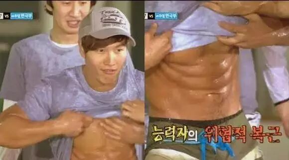 韩国《Running Man》里的金钟国,浑身肌肉,酷爱健身,肌肉吊吊哒!节目中胆子大,无所畏惧,以一张图来说明~