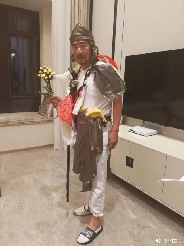 还有,张国立这画风貌似越跑越偏,九头牛都拉不回来的那种,身上头上缠着塑料袋绑着香蕉,一脚拖鞋,一脚休闲鞋,最in潮流fashion ,这搭配简直有毒,剧毒无比……就问你们见过这样的张国立吗~