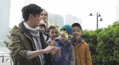 胡歌在英孚,和小“盆友”们一起玩,一起学英语。