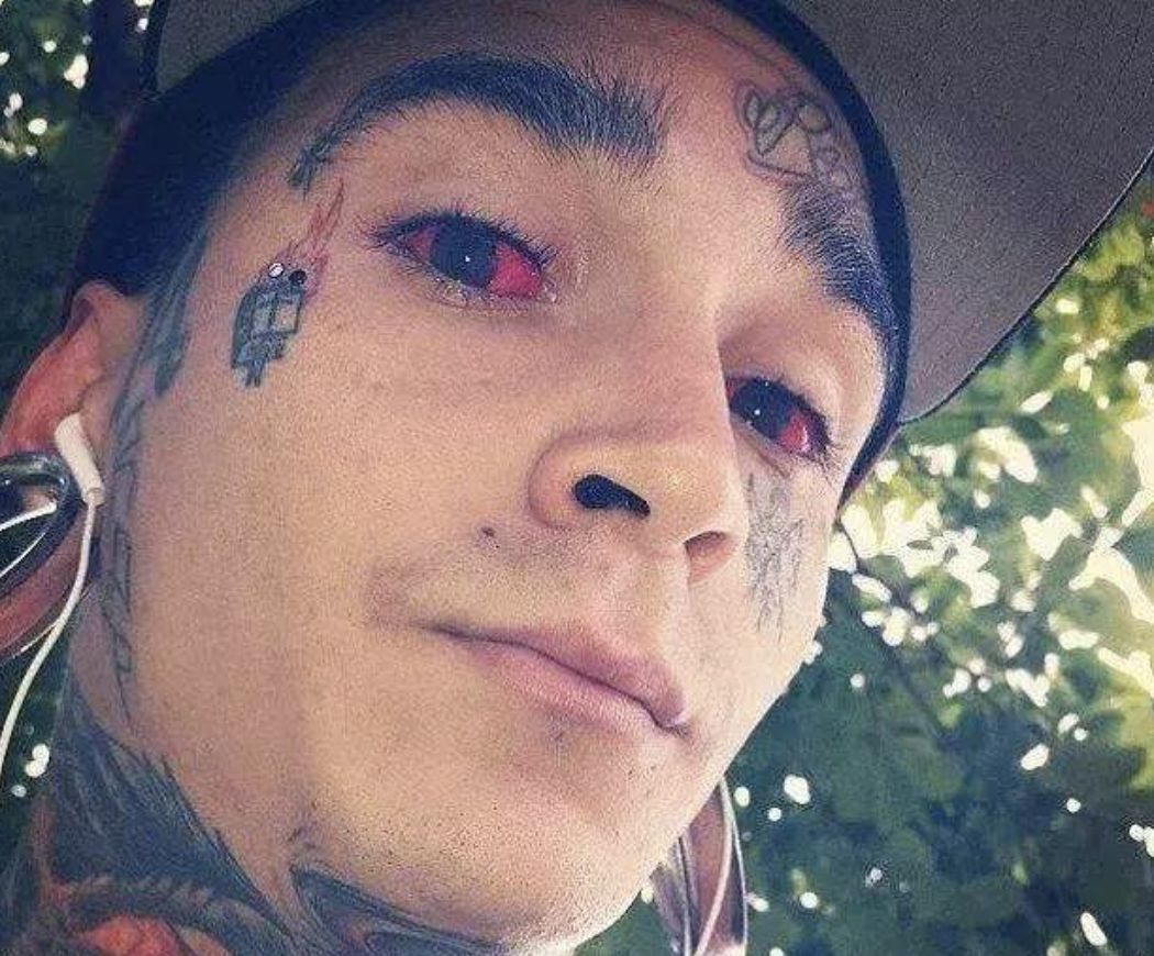 最夸张的莫过于眼球染色,这是一种纹身技术,也叫眼球填充。是用一种经过完全消毒的细小针头,戳入巩膜,然后往巩膜里滴入混合着抗生素的染料,从而把眼白染成彩色。样子吧...大家看看就知道了...