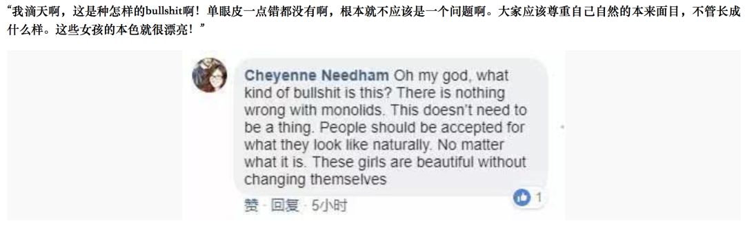 比如纷纷表示“完全看不出来双眼皮的区别啊?”、“应该尊重自己的本来面目”、“做自己更酷!”