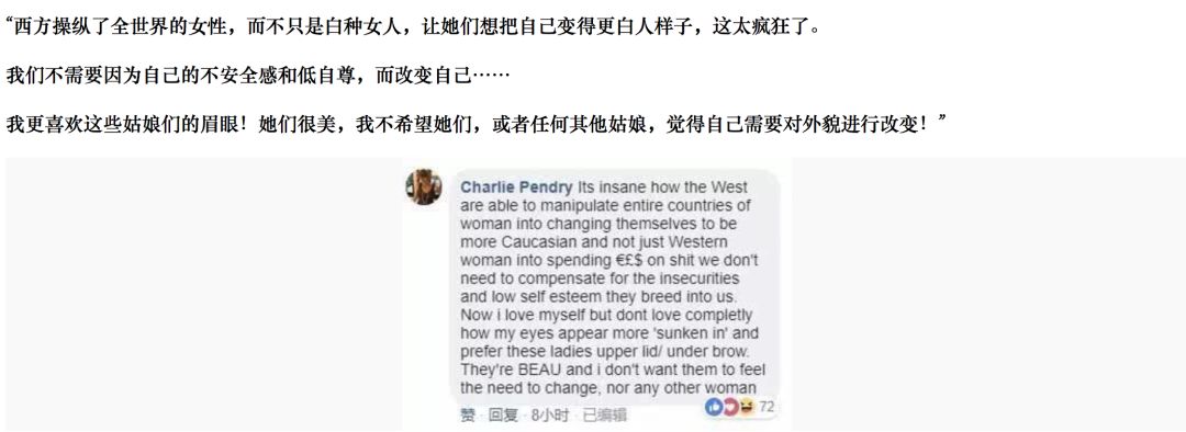 最高赞评论甚至上升到了西方审美操纵了全球女性,让所有人都想变成白人的样子...