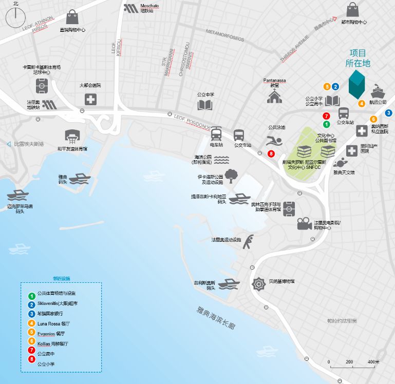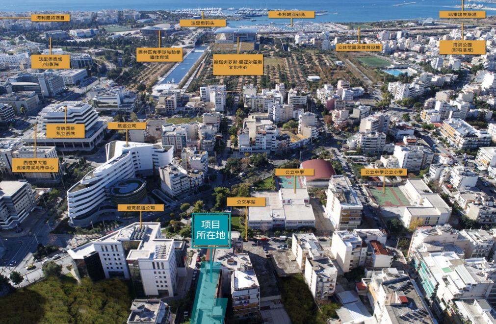 该项目地处雅典南部核心地段,CBD商务中心区,毗邻雅典新地标文化中心,滨海公园及雅典船王航运集团总部。临近雅典南部海滨长廊区域,步行可到海边。