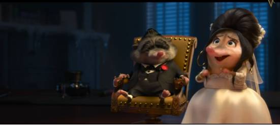 扒姐回复:那段像《教父》致敬的桥段简直不能再经典啊!据说黑老大本人就是教父的演员去配音的啊!她女儿的戏份也不算多,就在快要被甜甜圈压死那段和后面的婚礼上出现了出现过,总共就两次吧。钟思华刚出场时扒姐没看出来是意大利mafia风,还以为是中东土豪风呢,第二次出场的时候才反应过来。长得小不点儿还要跳舞,后面一群大白熊站在那里望着他们欢乐反差简直太强了。