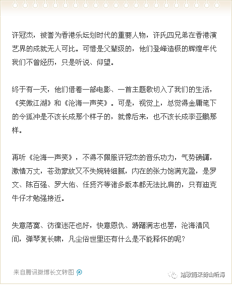 《沧海一声笑》(笑傲江湖主题曲)-许冠杰 踏歌而来倚山听海 港台男星 2017-11-06 00:00:02 258 创作不易,用心坚持,欢迎请BaGua喝几杯爱心咖啡!打赏并支持本文 打赏并删除本文 2012年9月20日 17:05 创作不易,用心坚持,欢迎请BaGua喝几杯爱心咖啡!打赏并支持本文 打赏并删除本文 感谢您的支持鼓励,我会继续努力的!文章地址:用户邮箱:打赏金额:USDT 请输入数字点击”去打赏“,即可进行打赏支持本文章哦 许冠杰 About the Author 踏歌而来倚山听海 功能介绍:且喜无拘无碍 Related Posts 《沧海一声笑》(笑傲江湖主题曲)-许冠杰 2017-11-06 00:00:02 发表评论