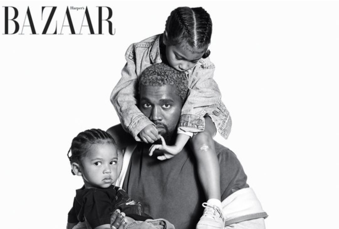 Kanye West与孩子为杂志拍摄照片