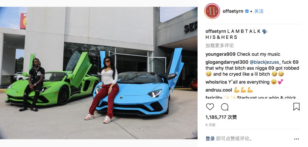 新晋母亲父亲Cardi B和Offset在这个月迎来了他们的第一个女儿Kulture后,决定给自己一个奖励,他们在各自的Instagram上发布了他们坐在两辆兰博基尼跑车上的照片。