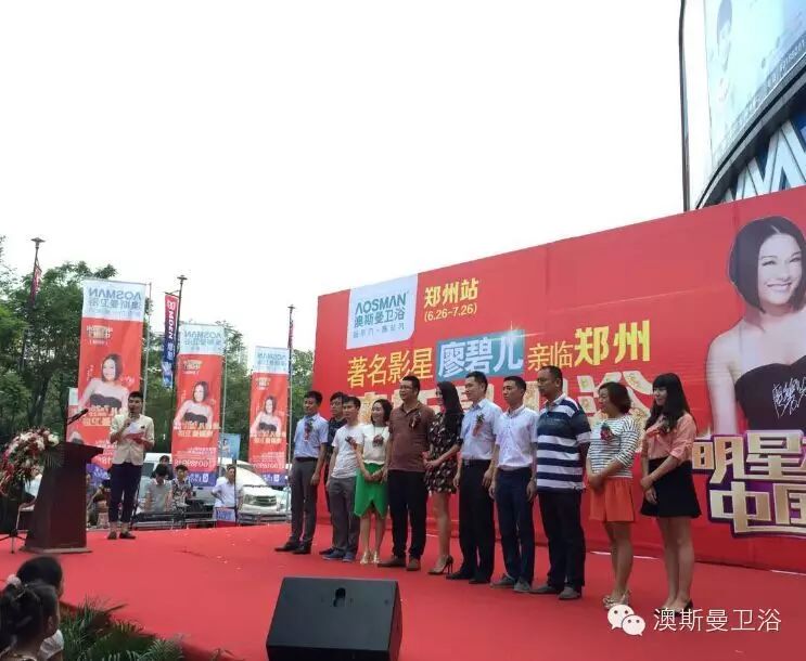 7月26日下午,澳斯曼卫浴“明星节水中国行”活动落地郑州,节水明星大使廖碧儿空降郑州市居然之家,倾情助阵本次活动。澳斯曼北区销售总监杨立、郑州澳斯曼卫浴总经理常小龙、郑州澳斯曼卫浴副总经理牛志鹏、郑州居然之家副总经理杨宏亮、唯美家居总经理董辉 、英伦华装家居总经理郑军霞、欧派衣柜总经理李峰刚、郑州白泽电子商务公司总经理韩亚伟等领导嘉宾们亲临活动现场,与现场数千名市民一起欢度盛夏,共同为郑州的节水出一份力,齐做节水达人!