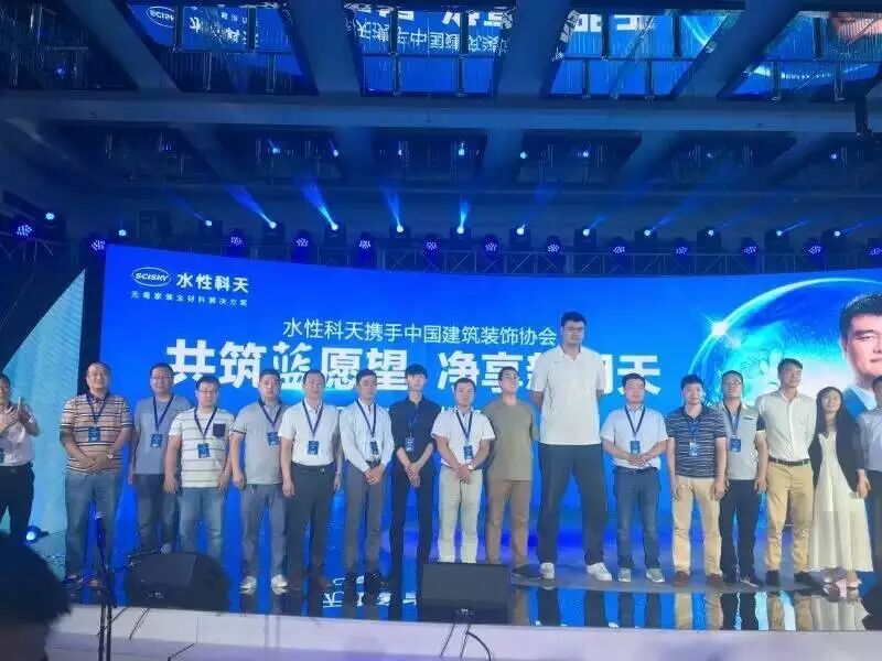 5月28日,水性科天携手中国建筑装饰协会举办的“共筑蓝愿望,净享新明天”无毒宣言发布会在北京盛大开幕。兰州市人民政府副市长牛向东、中国建筑装饰协会会长李秉仁、科天集团董事长戴家兵博士等嘉宾出席本次发布会。发布会上,水性科天环保大使姚明将强力发声,呼吁停止家装毒害,著名影视演员陈乔恩、歌手李琦、世界超模总冠军魏蔚、著名主持人周群等明星纷纷现身发布会现场,以行动支持助力无毒宣言的发布。