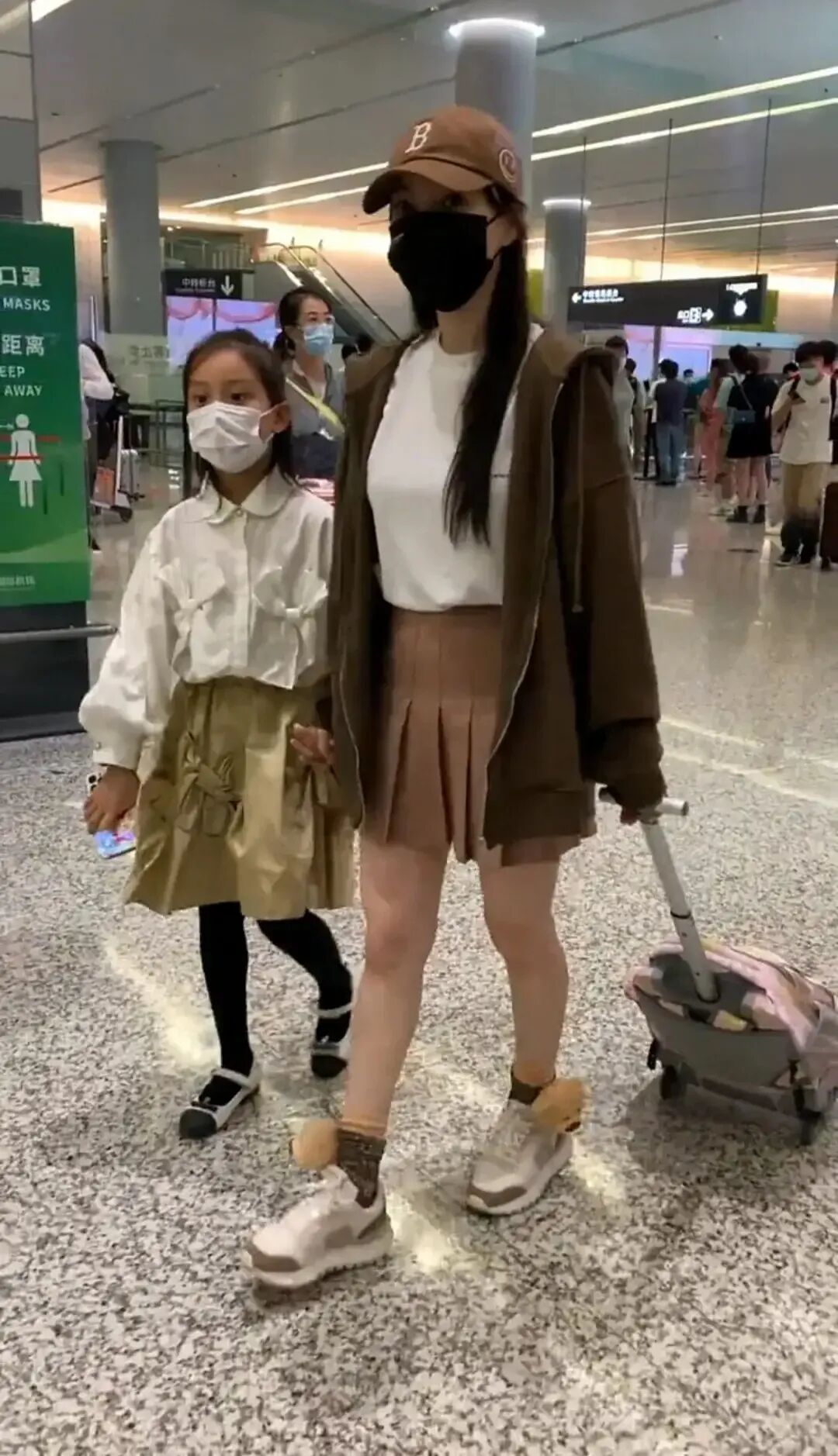 李小璐带着甜馨一起走机场,女儿穿着一件灯笼袖蝴蝶衬衫,搭配同款半身裙,经典百搭的配色,让甜馨看上去有种成熟的即视感,尤其是搭配的黑色打底裤,勾勒出纤纤玉腿,这种搭配说不上惊艳,还显得很老练,少了一些小女孩的梦幻和甜美气息,反倒是妈妈,李小璐整体同色系搭配,看上去更加少女。