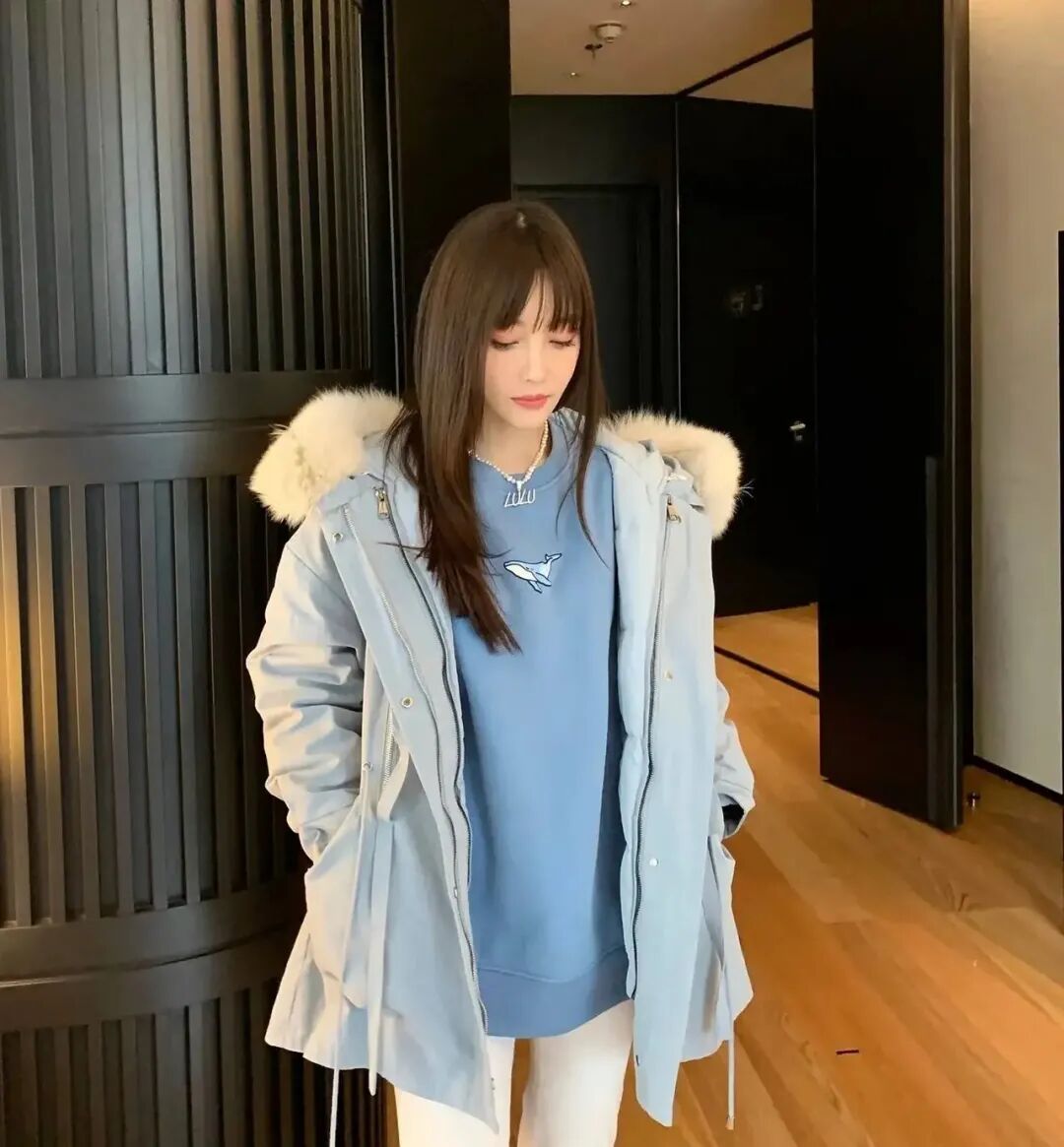 李小璐的这一套穿搭,都非常符合今年的流行元素和特点,尤其是像这种遮臀款式的连帽卫衣,搭配短款百褶裙,然后露出一点点裙摆的穿搭手法,是减龄感的必备条件,同时也是塑造“学姐风”的关键,整个露出双腿线条更显少女感。