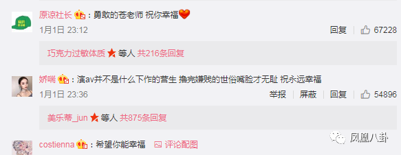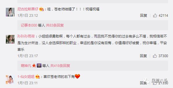 公布结婚喜讯的消息一出,苍老师的微博有漫天的祝福声↓