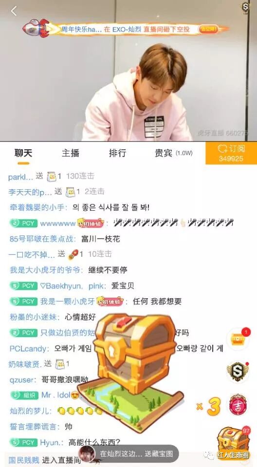 不过这并不影响追星少女对偶像的狂热,直播间当晚人气最高峰值513万。由于过几天就是灿烈在EXO出道8周年,不少女粉(富婆)纷纷前来豪刷,提前给灿烈贺礼,其中就包括有榜一EXO粉丝站,宣示了EXO的团魂。在这个不存在公会号的直播间里,两个小时的直播粉丝就送出了价值41万的礼物,女粉的消费能力实在是顶,堪称金矿。