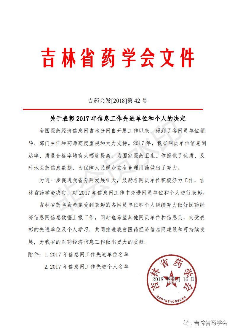 开幕式结束后,大会进入表彰环节。药物信息专业委员会主任委员蔡晓虹宣读了《关于表彰2017年信息工作先进单位和个人的决定》、《关于表彰第一届“天士力”杯药师之星空中大讲堂获奖个人的决定》、《关于表彰学术会议突出贡献单位的决定》等三个表彰文件(具体文件见附件1),吉林省药学会分别对我省医药经济信息网17个先进网员单位、5名先进个人、第一届“天士力”杯药师之星空中大讲堂获奖8个人及学术会议突出贡献单位长春市中心医院进行了表彰。