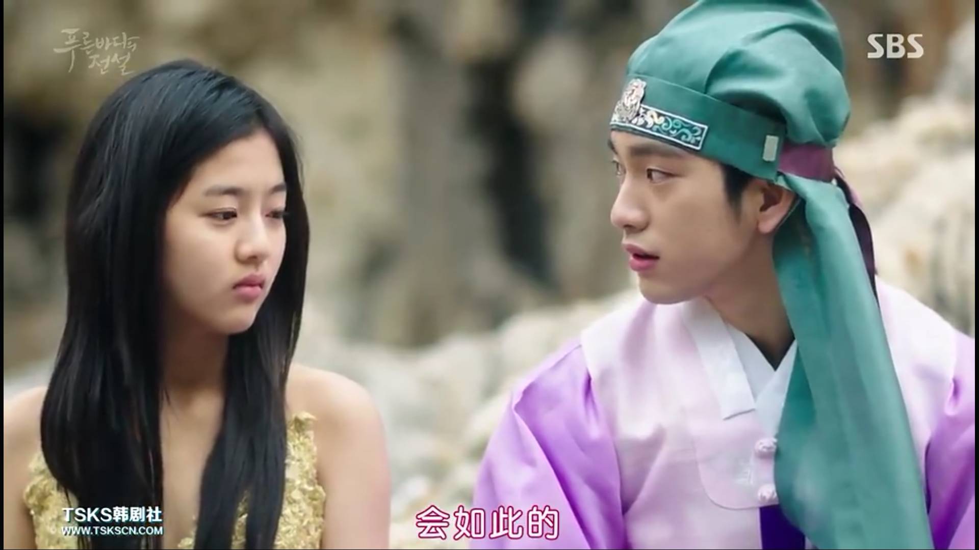 既然说到古代了,就说一说古代的剧情,可以说,蓝海整部剧的剧情最成功的部分就是古代部分了。新上任的县令金聃龄和被捕获的美人鱼世华之间的爱情美好而又忧伤,脱去女神经形象的全智贤饰演的古代美人鱼也十分端庄美丽,几张jpg就能感受到她的女神气质。