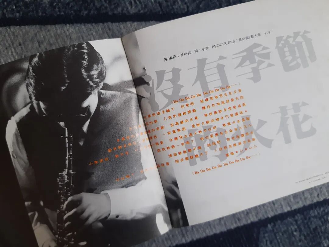 《没有季节的火花》是专辑封面标签上打的三首推荐曲目之一,一首充满热情活力的拉丁风粤语歌。苏永康出道时的标签,是“会唱布鲁斯的流行歌手”,他的第一任监制林慕德,就为他量身打造了多首布鲁斯、爵士风格的歌曲,比如开头提到的那首维他柠檬茶广告歌。老实说,布鲁斯实在非黄尚伟所长,这一首拉丁风歌曲也变相拓宽了苏永康的歌路。不仅如此,还产生了更加强烈的对比效果,所以歌手有时候也会随着制作人的风格而转变。