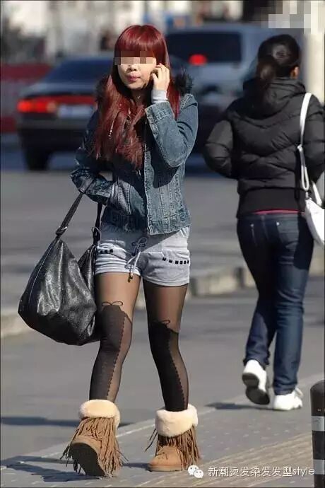 一年四季,短裤配丝袜,却穿着一双短靴,完全搞不懂是什么时尚,只知道露出的粗腿好臃肿。