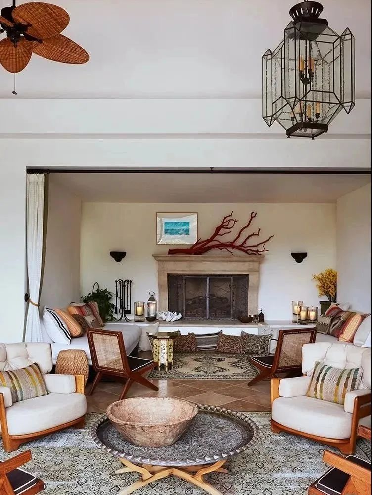 Robbie Williams家里台球室的休息区摆放着Guillerme & Chambrone设计的座椅,以及购自Galerie Half的Pierre Jeanneret设计的座椅。