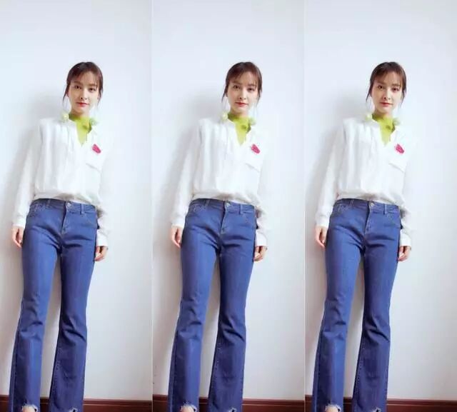 简约的白色衬衫必须来上一款,内搭上一款针织衫,整个搭配简约中带着时尚的气息,尤其是凹上一款牛仔微喇叭裤,遮肉显瘦又很有时尚感的节奏