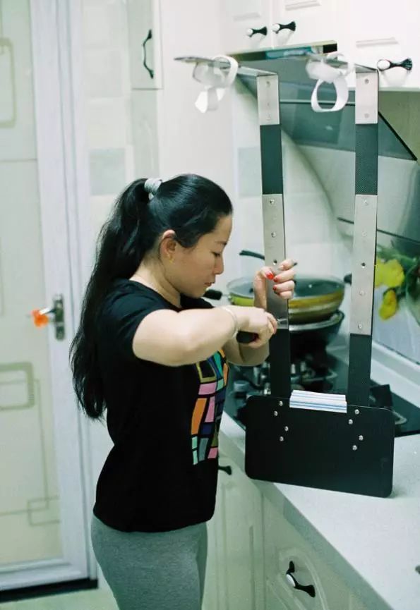 轮椅上方的松紧带支架,是妈妈根据图纸在淘宝选购材料后亲手制作