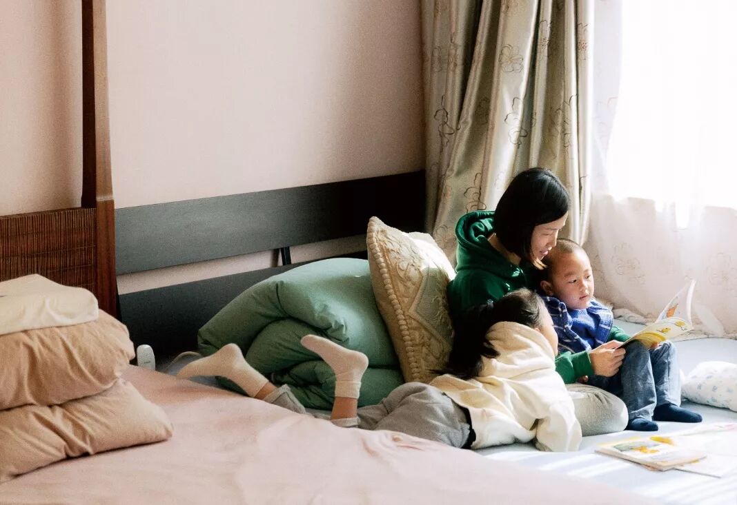 早上11点,妈妈给两个孩子讲着他们最喜欢的故事《Biscuit》