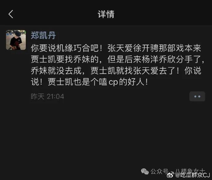 同时网友推断乔欣说的这个“张小姐”就是张天爱,早年确有张天爱和杨洋的绯闻。
