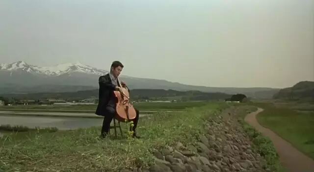 影片开头,主角小林还是东京一个乐团的大提琴手,乐团解散后,他卖掉心爱的大提琴,和妻子美香回到老家山形县生活。