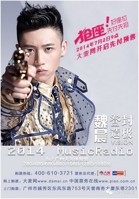 2014年夏天,MusicRadio音乐之声将再度携手魏晨火热开唱,举办魏晨首个全国巡回演唱会,掀起时尚V潮流。2014MusicRadio魏晨“登封造极”巡回演唱会全面启动。