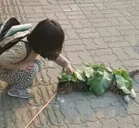 小女孩儿给路边睡着了的猫猫身上盖满了树叶,因为担心小猫睡着了会感冒,所以要给它盖好“被子”。
