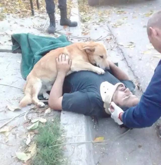 阿根廷当地一位居民在修剪树枝的时候不小心从梯子上摔了下来,在救护车来之前他的狗就这么一直趴在他身上陪着他。