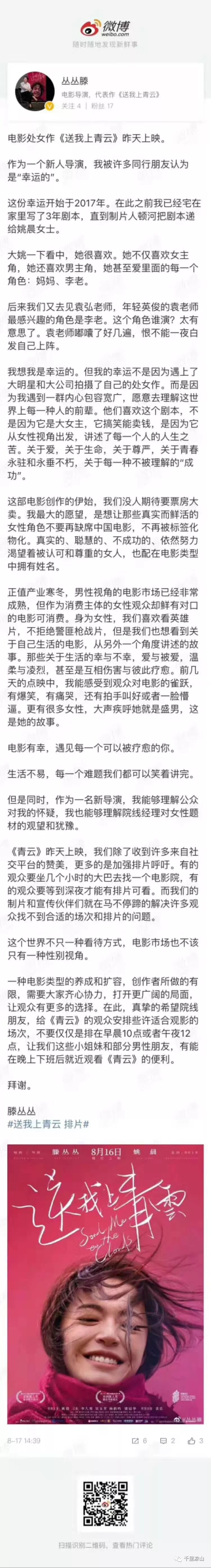 8月16日,《送我上青云》全国院线同步上映,这是一部由大嘴美女姚晨次担任监制的电影,也是娱乐圈新秀李九霄首次搭档姚晨出演男主角。