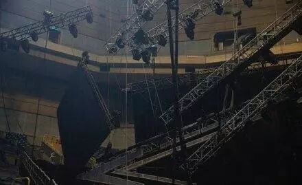 左侧观众的LED荧幕突然掉下来,连带着灯光等硬体设备一起坠落,所幸意外发生时没有人员受伤。