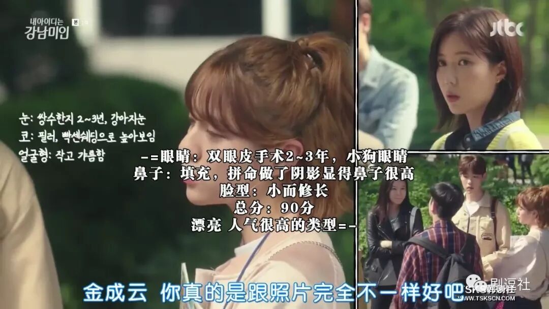(PS:由于首尔江南区整容业发达,所以整容痕迹明显的女性被称为“江南美人”)