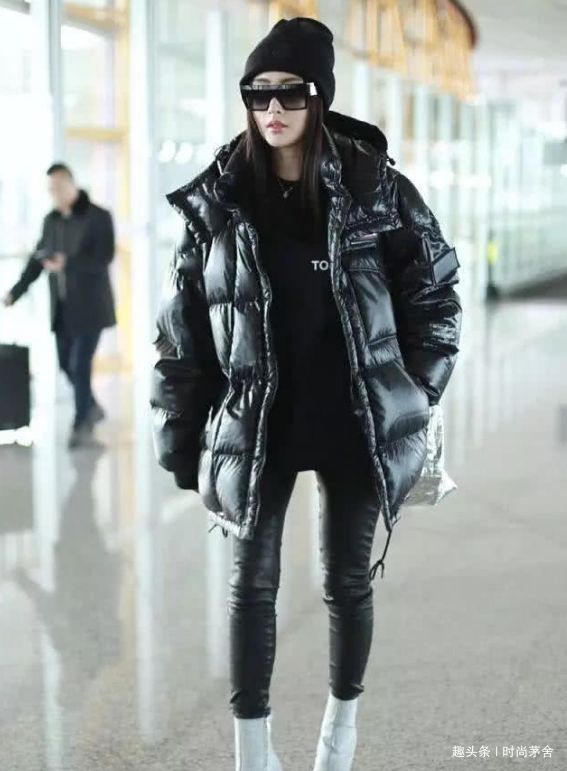 早期现身机场的张天爱身穿一件黑色亮面的羽绒服,羽绒服款式是今年最流行的光面款,不少女明星纷纷都穿上了同款,这种羽绒服的特点就是又宽又大,如果搭配不好就会显得很臃肿,张天爱天生就是衣架子,即使穿上宽大的羽绒服也觉得非常时尚,黑色的羽绒服穿在他身上给人一种帅气的感觉,也许是张天爱身上的气质给扛住了,如果换成我们普通人穿恐怕就没有这样的效果了。