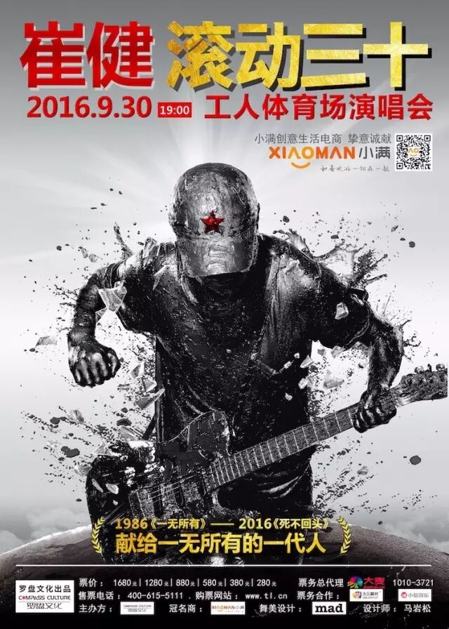 关注“小满生活公会”公众微信(微信号:xiaomanlifestyle),分享本文到朋友圈,并截图发给“小满生活公会”微信号后台(个人微信号+真实姓名+手机号码+收货地址,作为兑奖验证信息,小满生活公会保证该信息不会作其他用途),小满会在符合抽奖条件的用户中每 100 名抽取一名中奖用户,赠送 9 月 30 日崔健滚动三十演唱会北京站门票或崔健滚动三十演唱会定制收藏品。运气属于真正的摇滚灵魂,10 张崔健演唱会门票,演唱会特别设计定制马克杯、笔记本和收藏版纪念方巾各 10 件,你会是最幸运的那个人吗?