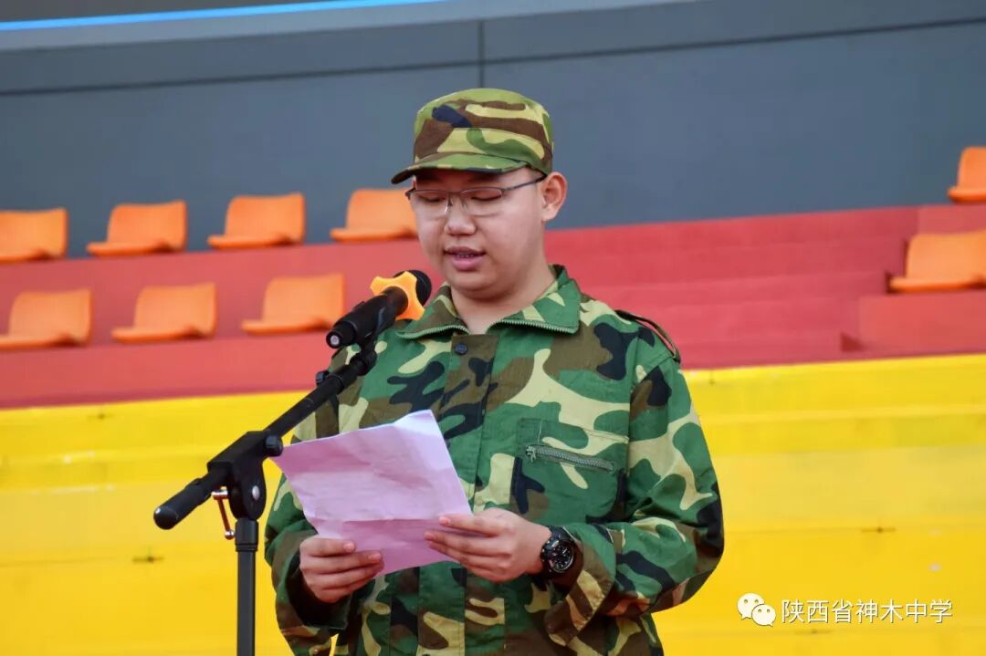 庄严奏唱国歌后,高一(1)班学生代表高梓轩发言。他代表全体高一新生表达了踏入神中的激动心情,同时庄严承诺在军训中将不怕苦、不怕累、不怕风吹日晒,以军人的身份严格要求自己,遵守纪律,听从指挥,服从命令。他铿锵有力地宣誓:纵使军训有疲惫,但我们能化解;纵使军训有辛酸,但我们能忘却;纵使军训有困难,但我们能克服!