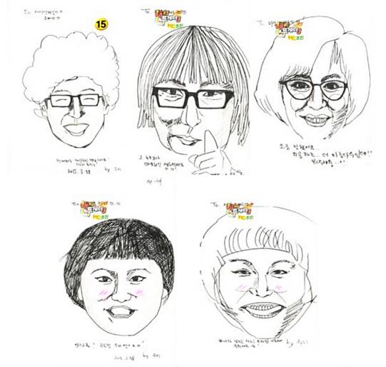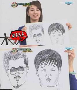 秀智的特长是漫画,尤其是一些夸张的人像漫画。